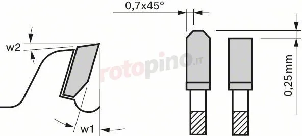 - Larghezza di taglio (b1) mm / spessore corpo della lama (b2) mm: 2,5/1,8