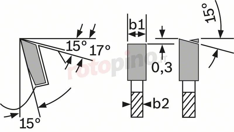 - Larghezza di taglio (b1) mm / spessore corpo della lama (b2) mm: 2,4/1,8